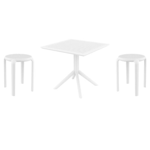 Introducing the Tom chairs and Sky 31" square table 3 piece dining set in White - the perfect addition to any small outdoor living area! Crafted from high-quality polypropylene resin, this set is durable and weather-resistant, ensuring it will last you for years to come. Tom chairs feature a sleek and modern design, with a comfortable seat and backrest. Sky 31" square table providing ample space for two people to enjoy a meal or drink together.