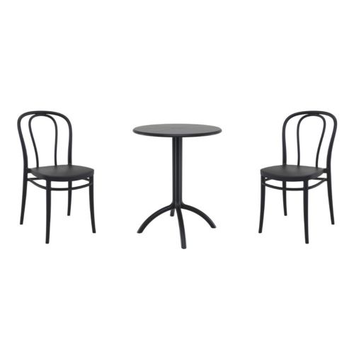 Transform your small outdoor area into a stylish space with Victor chairs and Octopus 24" round table 3 piece bistro set in black. Made from durable polypropylene resin, this bistro set is perfect for balconies, terraces, decks, patios, cafes and restaurants. Victor chairs feature a sleek and contemporary design that adds a touch of sophistication to any space. Octopus 24" round table provides plenty of room for two people to sit and enjoy a meal or drink together.