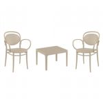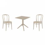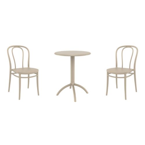Transform your small outdoor area into a stylish space with Victor chairs and Octopus 24" round table 3 piece bistro set in taupe. Made from durable polypropylene resin, this bistro set is perfect for balconies, terraces, decks, patios, cafes and restaurants. Victor chairs feature a sleek and contemporary design that adds a touch of sophistication to any space. Octopus 24" round table provides plenty of room for two people to sit and enjoy a meal or drink together.