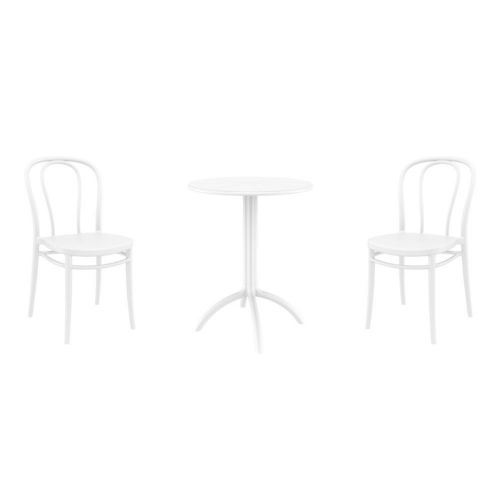 Transform your small outdoor area into a stylish space with Victor chairs and Octopus 24" round table 3 piece bistro set in white. Made from durable polypropylene resin, this bistro set is perfect for balconies, terraces, decks, patios, cafes and restaurants. Victor chairs feature a sleek and contemporary design that adds a touch of sophistication to any space. Octopus 24" round table provides plenty of room for two people to sit and enjoy a meal or drink together.