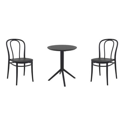 Transform your small outdoor area into a stylish space with Victor chairs and Sky 24" round folding table 3 piece bistro set in black. Made from durable polypropylene resin, this bistro set is perfect for balconies, terraces, decks, patios, cafes and restaurants. Victor chairs feature a sleek and contemporary design that adds a touch of sophistication to any space. Sky 24" round folding table provides plenty of room for two people to sit and enjoy a meal or drink together.
