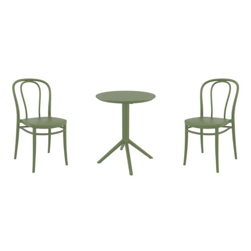 Transform your small outdoor area into a stylish space with Victor chairs and Sky 24" round folding table 3 piece bistro set in olive green. Made from durable polypropylene resin, this bistro set is perfect for balconies, terraces, decks, patios, cafes and restaurants. Victor chairs feature a sleek and contemporary design that adds a touch of sophistication to any space. Sky 24" round folding table provides plenty of room for two people to sit and enjoy a meal or drink together.