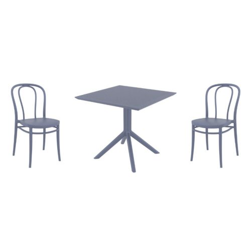 Introducing the Victor chairs and Sky 31" square table 3 piece dining set in Dark Gray - the perfect addition to any small outdoor living area! Crafted from high-quality polypropylene resin, this set is durable and weather-resistant, ensuring it will last you for years to come. Victor chairs feature a sleek and modern design, with a comfortable seat and backrest. Sky 31" square table providing ample space for two people to enjoy a meal or drink together.