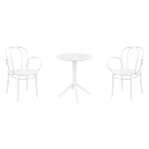 Transform your small outdoor area into a stylish space with Victor XL arm chairs and Sky 24" round folding table 3 piece bistro set in white. Made from durable polypropylene resin, this bistro set is perfect for balconies, terraces, decks, patios, cafes and restaurants. Victor XL arm chairs feature a sleek and contemporary design that adds a touch of sophistication to any space. Sky 24" round folding table provides plenty of room for two people to sit and enjoy a meal or drink together.
