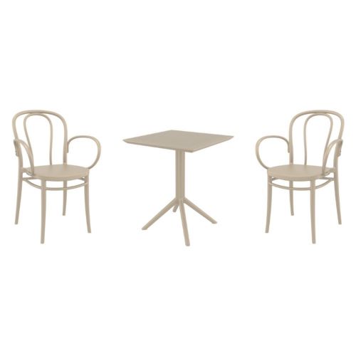 Transform your small outdoor area into a stylish space with Victor XL arm chairs and Sky 24" square folding table 3 piece bistro set in taupe. Made from durable polypropylene resin, this bistro set is perfect for balconies, terraces, decks, patios, cafes and restaurants. Victor XL arm chairs feature a sleek and contemporary design that adds a touch of sophistication to any space. Sky 24" square folding table provides plenty of room for two people to sit and enjoy a meal or drink together.