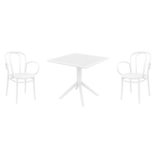 Introducing the Victor XL arm chairs and Sky 31" square table 3 piece dining set in White - the perfect addition to any small outdoor living area! Crafted from high-quality polypropylene resin, this set is durable and weather-resistant, ensuring it will last you for years to come. Victor XL arm chairs feature a sleek and modern design, with a comfortable seat and backrest. Sky 31" square table providing ample space for two people to enjoy a meal or drink together.