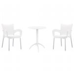 Transform your small outdoor area into a stylish space with Vita chairs and Sky 24" square folding table 3 piece bistro set in white. Made from durable polypropylene resin, this bistro set is perfect for balconies, terraces, decks, patios, cafes and restaurants. Vita chairs feature a sleek and contemporary design that adds a touch of sophistication to any space. Sky 24" square folding table provides plenty of room for two people to sit and enjoy a meal or drink together.