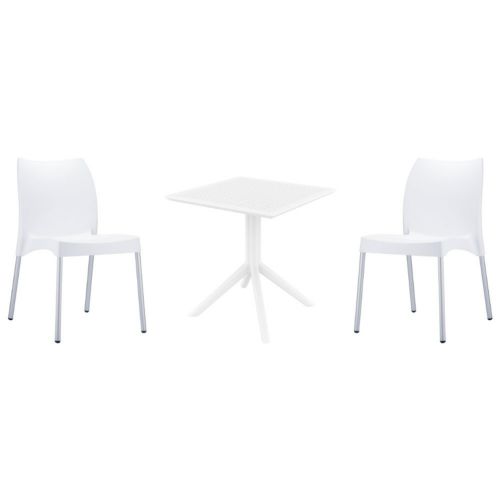 Introducing the Vita chairs and Sky 27" square table 3 piece dining set in White - the perfect addition to any small outdoor living area! Crafted from high-quality polypropylene resin, this set is durable and weather-resistant, ensuring it will last you for years to come. Vita chairs feature a sleek and modern design, with a comfortable seat and backrest. Sky 27" square table providing ample space for two people to enjoy a meal or drink together.