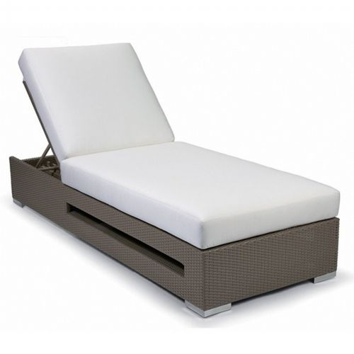 10Tierra outdoor wicker chaise lounge. Contemporary patio furniture design. Made from all weather outdoor wicker over strong powder coated aluminum frame. Maintenance free. Can be washed down with water. Totally outdoor resistant. Cushions are made from 100% Sunbrella fabric and durable for outdoor use. Seat and back cushions included. Wicker available in Moccachino only. Cushions are 5 inch thick. Sunbrella fabric is available in multiple colors and patterns.