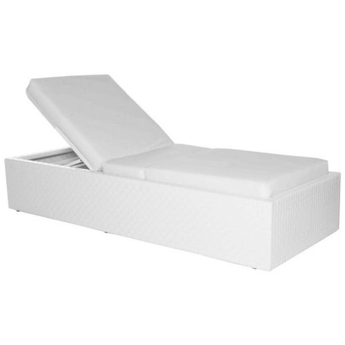 Tidelli Cube chaise lounge. Modern and clean design. Hand finished aluminum tubing with synthetic Ti-Flex wicker. Unique wide weave made with high gloss colors. Back adjustable to multiple positions and folds flat. Both sides of the chaise lounge can be lifted for following sun or just changing positions. Cushions are made from Sunbrella fabric and durable for outdoor use. Frame resistant to outdoors. Cushions included. Cushions available in Sunbrella colors. Wicker Ti-Flex available in white. Frame in silver color.