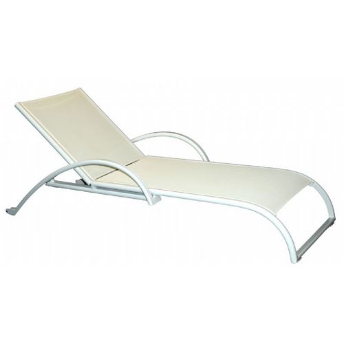 The Pure Sun Lounge comes in a white aluminum frame with an off white sling. This chaise lounge has a multi-position reclining seat that also lies flat for more comfortable sunbathing. The Pure Sun Lounge has a sleek modern look and may be used in a variety of settings including resorts, hotels or condominiums. Very durable and is resistant to harsh outdoors conditions.