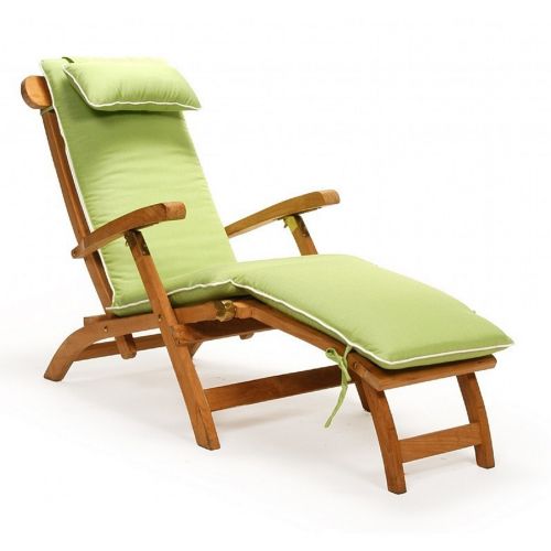 Modern teak patio steamer chaise lounge with cushion. Made with kiln-dried, grade a teak wood. Traditional steamer chaise made with modern and simple design. Teak wood is natural and suitable for outdoors. Requires regular teak wood maintenance. Cushions are made of Sunbrella fabric and available in multiple colors. Chaise cushions are 2 inch thick. Cushion included in price.