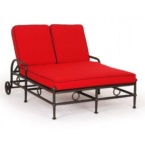 Origin cast aluminum patio chaise lounge daybed with cushion. Classic Mediterranean design cast aluminum furniture collection. Double chaise lounge is great for pool side seating. Strong cast and tubular frames come with four inch Sunbrella seat cushions. All corners are welded 360° for maximum strength and powder coated so it won't chip, fade, or scratch. Desert bronze color frames gives a traditional aged look. Perfect for outdoors. Cushions are made of Sunbrella fabric and available in multiple colors. Cushion covers can be machine washed. Cushion included in price. Frame Color: Espresso.