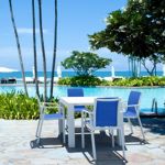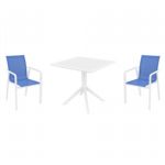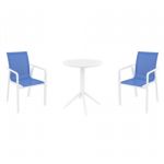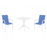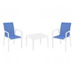 Siesta LogoPacific resort quality pool furniture chaise lounge with white frame and blue sling. Elegant modern looks with commercial strength. Chaise lounge is perfect for pools and beach areas. Sling is made with Serge Ferrari mesh fabric. Chaise is very comfortable and no need for cushions. Back adjustable to 5 positions and folds flat for more comfortable sun bathing. Recessed wheels make it easy to move around. Sun lounger stacks for easy storage. High quality marine grade sling dries quick and doesn't stick to bare skin. Frame made of marine grade resin. Extremely durable and comfortable. Commercial grade.