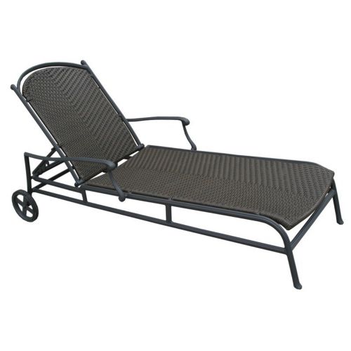 Tuscan Lorne outdoor chaise lounge from Tortuga Outdoor. Chaise lounge is made from powder coated aluminum with antique gray finish and handbraided with all weather wicker. Resistant to harsh weather, winter and hot sun. Very comfortable and elegant design. Chaise has wheels for easy mobility. Wicker offered in mahogany color.