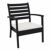 Black Artemis resin outdoor club arm chair with black cushion. Contemporary design with super sturdy commercial strength. Made from commercial grade resin with gas injection molded legs. Stacking club chairs are perfect for heavy use areas. Casual and modern design make it suitable for indoors and outdoors. Polypropylene frame resists sun, oils, chlorine and all outdoor conditions. Certified for strict European standards by CATAS Italian research institute and test laboratory.