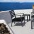 Dark gray Artemis resin outdoor club arm chair with black cushion. Contemporary design with super sturdy commercial strength. Made from commercial grade resin with gas injection molded legs. Stacking club chairs are perfect for heavy use areas. Casual and modern design make it suitable for indoors and outdoors. Polypropylene frame resists sun, oils, chlorine and all outdoor conditions. Certified for strict European standards by CATAS Italian research institute and test laboratory.