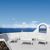 White Artemis white resin outdoor club arm chair with Natural cushions. Contemporary design with super sturdy commercial strength. Made from commercial grade resin with gas injection molded legs. Stacking club chairs are perfect for heavy use areas. Casual and modern design make it suitable for indoors and outdoors. Polypropylene frame resists sun, oils, chlorine and all outdoor conditions. Certified for strict European standards by CATAS Italian research institute and test laboratory.