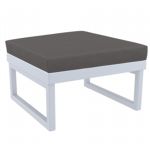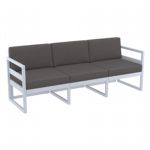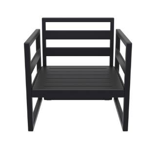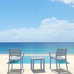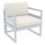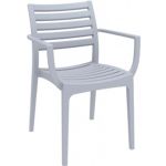 Silver Gray Mykonos resin outdoor club arm chair with 100% acrylic cushions. Modular contemporary design with commercial strength. Made from commercial grade polypropylene resin. Club chairs are perfect for heavy use areas. Casual and modern design make it suitable for indoors and outdoors. Polypropylene frame resists sun, oils, chlorine and all outdoor conditions. 100% acrylic outdoor cushions are 4.5 inches thick. Certified for strict European standards by CATAS Italian research institute and test laboratory.