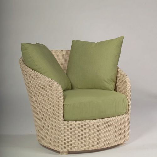 Club Chair from Whitecraft offers traditional designs with simple curves. Collection features thick cushions for added comfort. All furniture items are made with aluminum frames with powdercoating finishes woven with high density polyethylene wicker. Woven wicker mimics the natural beauty and character while providing maintenance-free and easy to clean use. Outdoor wicker will not rot, peel, fade or chip. Sunbrella cushions.