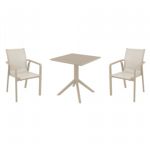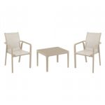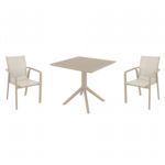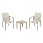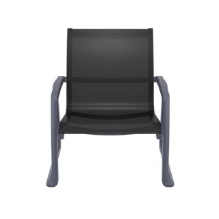 Taupe frame with Taupe Sling Pacific resort quality club lounge arm chair. Simple sleek design with commercial strength. Sling is made with Serge Ferrari mesh fabric. Club chair is very comfortable and no need for cushions. Stacks for easy storage. Frame made of marine grade resin polypropylene. Extremely durable and comfortable. Commercial grade.