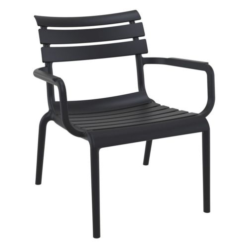 Paris outdoor club lounge chair is a low seating chair. Great for outdoor spaces, patios and decks. Stackable for storage.