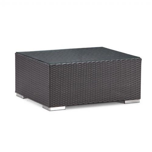 Dijon outdoor wicker rectangle table. Contemporary and modern patio furniture design. Made from all weather outdoor wicker over strong extruded powder coated aluminum frame. Maintenance free. Can be washed down with water. Totally outdoor resistant. Wicker available in Espresso only. Includes glass top.
