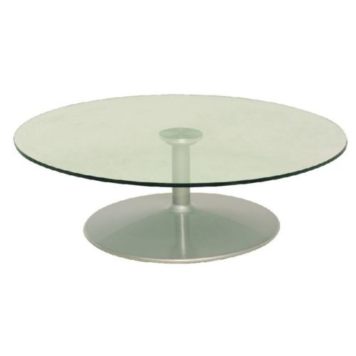 Tidelli Goa coffee table. Aluminum tube structure finished with polyester paint with glass top. 100% outdoors resistant. Light. Modern simple design. Top size: 35 inch in diameter. Height: 14 inches.