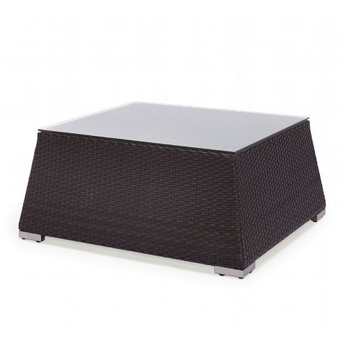 Maxime outdoor wicker coffee table. Bold geometric design. Made from Viro outdoor wicker over strong aluminum frames. Maintenance free. Can be washed down with water. Totally outdoor resistant. Viro outdoor wicker is handbraided and highly resistant to fading, cracking or mildew. Wicker available in Espresso only.