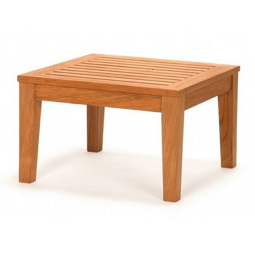 Modern teak square end table. Simple and elegant design is perfect for deep seating arrangements. Made with kiln-dried, grade a teak wood. Teak wood is natural and suitable for outdoors. Requires regular teak wood maintenance. Great to use with teak patio furniture sets. Dimensions: 24"L × 24"W × 15"H.
