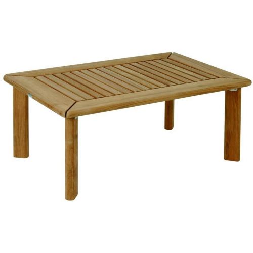 Triconfort Normandy natural teak rectangle cocktail table. Top quality aged teak minimum age 120 years. Pores closed. Smooth natural feel. Teak wood comes from forests specially grown for production.