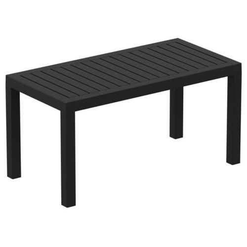 Ocean rectangle resin outdoor coffee table. Commercial grade polypropylene construction. Made from recyclable resin. Perfect for heavy use areas, patios, balconies, poolsides. Resin table is resistant to UV, suntan oils, saltwater and chlorine. No metal parts.