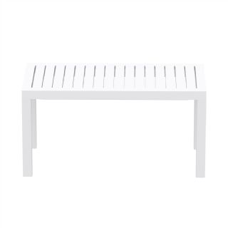 Siesta LogoOcean rectangle resin outdoor coffee table. Commercial grade polypropylene construction. Made from recyclable resin. Perfect for heavy use areas, patios, balconies, poolsides. Resin table is resistant to UV, suntan oils, saltwater and chlorine.