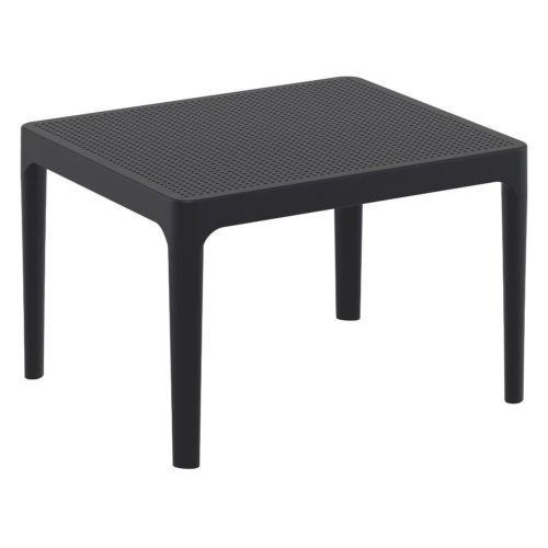 Sky resin side table. Commercial grade polypropylene construction makes it strong and durable. Perfect for heavy use areas like patios, balconies, poolsides. Table top has pinholes that helps with rain water drainage and creates a modern look. Resin table is resistant to UV, suntan oils, saltwater and chlorine. Easy assembly required.