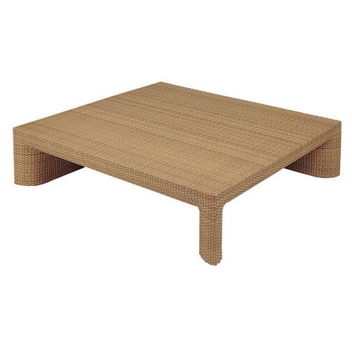 Kettal Xxl coffee table. Hularo brand outdoor wicker is handbraided. Strong but light aluminum frames. Contemporary design. Great for all outdoor areas. Available in natural and etna. Dimensions: 41 inches wide × 41 inches deep × 11 inches high.