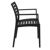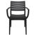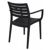 Artemis black outdoor dining arm chair. Comfortable seat and back with strong arms. Super sturdy commercial strength. Made from commercial grade resin with gas injection molded legs. Heavier and wider than most resin chairs of its type. Stacking chairs are perfect for heavy use areas. Preferred by restaurants, cafes and hotels. Certified for strict European standards by CATAS Italian research institute and test laboratory.