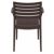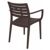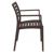 Artemis brown outdoor dining arm chair. Comfortable seat and back with strong arms. Super sturdy commercial strength. Made from commercial grade resin with gas injection molded legs. Heavier and wider than most resin chairs of its type. Stacking chairs are perfect for heavy use areas. Preferred by restaurants, cafes and hotels. Certified for strict European standards by CATAS Italian research institute and test laboratory.