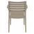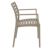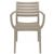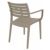 Artemis taupe outdoor dining arm chair. Comfortable seat and back with strong arms. Super sturdy commercial strength. Made from commercial grade resin with gas injection molded legs. Heavier and wider than most resin chairs of its type. Stacking chairs are perfect for heavy use areas. Preferred by restaurants, cafes and hotels. Certified for strict European standards by CATAS Italian research institute and test laboratory.