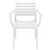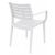 Artemis white resin outdoor dining arm chair. Super sturdy commercial strength. Made from commercial grade resin with gas injection molded legs. Heavier and wider than most resin chairs of its type. Stacking chairs are perfect for heavy use areas. Preferred by restaurants, cafes and hotels. Certified for strict European standards by CATAS Italian research institute and test laboratory.