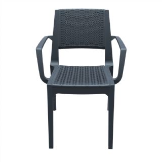 Perfect arm chair for restaurant use. Polypropylene construction is very heavy duty. Stackable. Easy to clean. Light but strong. Woven look is very elegant.