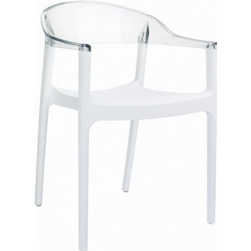 Carmen stacking indoor outdoor arm chair. Modern design. Carmen chair is made with polypropylene construction and a polycarbonate back. Chair legs are reinforced with fiber glass. Commercial grade chairs can be used indoors or outdoors. Chairs are maintenance free. Stacking chairs are available in multiple color combinations. Certified for strict European standards by CATAS Italian research institute and test laboratory.