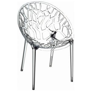 The chair is magnificent. It looks like carved ice. On a hot, summer day it seemingly lowers the temperature of terrace dining. Designing a complimentary table 4'(D) would be a real coup d'etat, as opaque (however handsome) tables tend to diminish the 'fantasy' aspect of the transparent seating.