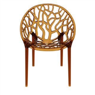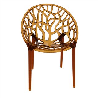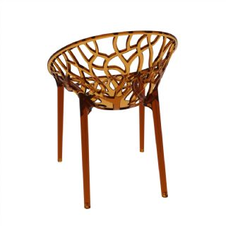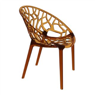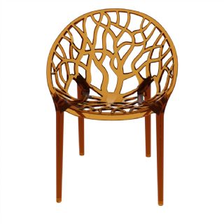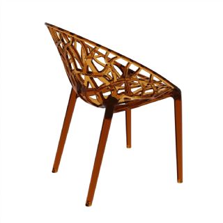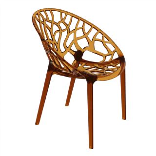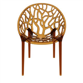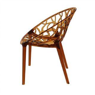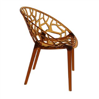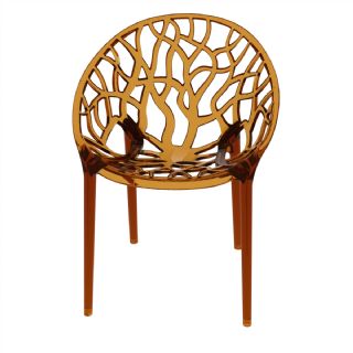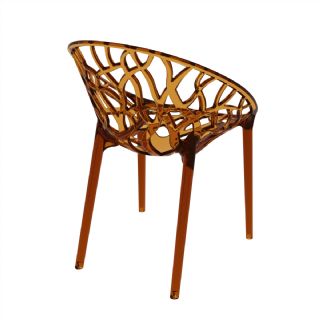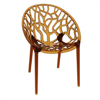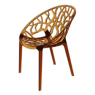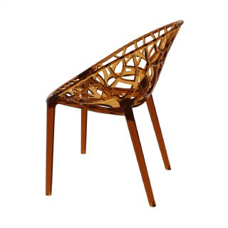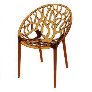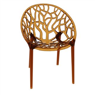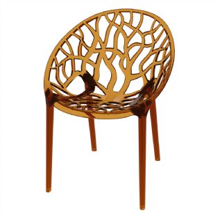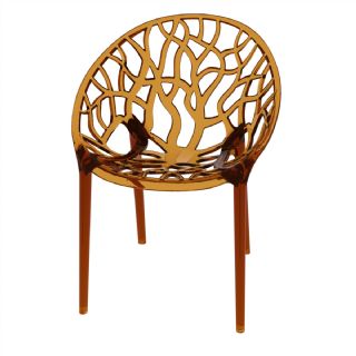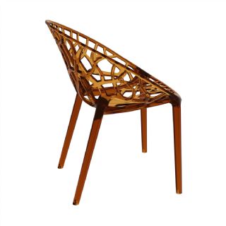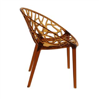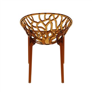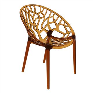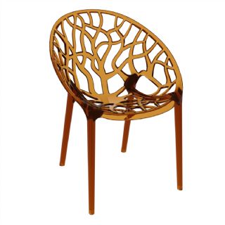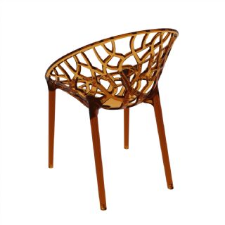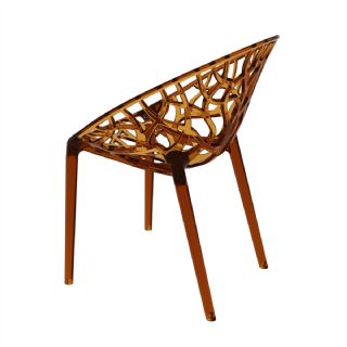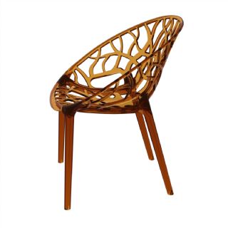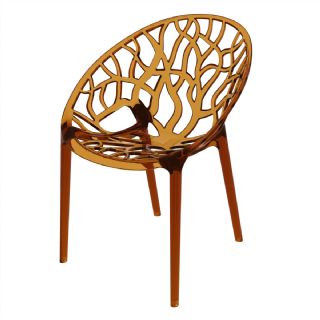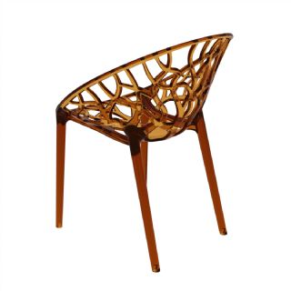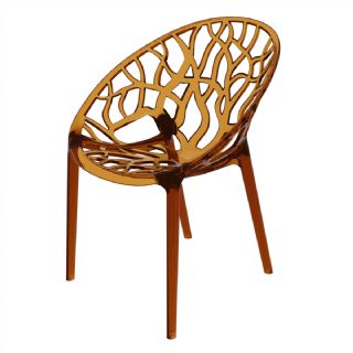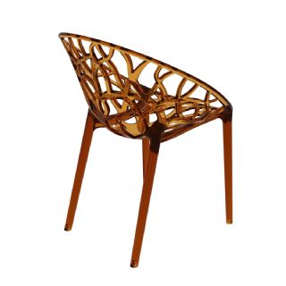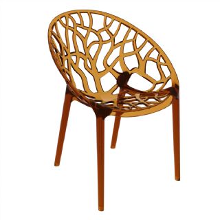 Crystal clear acrylic plastic amber indoor outdoor dining chair. Unique design offers contemporary looks with commercial durability. Unique branching frame design leaves a great looking shadow. Crystal chair is suitable for indoor or outdoor use. Chairs stack. Made with clear polycarbonate, moulded with gas technology. Scratch and UV resistant. Perfect for home or commercial use. Clear acrylic chairs are the new trend in Europe. Certified for strict European standards by CATAS Italian research institute and test laboratory.