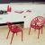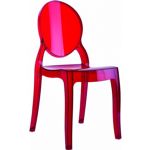 Crystal clear plastic indoor outdoor dining chair in lucite red. Unique design offers contemporary looks with commercial durability. Unique branching frame design leaves a great looking shadow. Crystal chair is suitable for indoor or outdoor use. Chairs stack. Made with clear polycarbonate, moulded with gas technology. Scratch and UV resistant. Perfect for home or commercial use. Clear acrylic chairs are the new trend in Europe. Certified for strict European standards by CATAS Italian research institute and test laboratory.