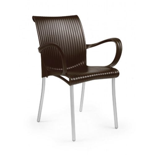 Dama antracite commercial grade stacking dining armchair from Nardi. Arm chair is perfect for restaurants and public areas. Used by five star resorts around the world. Stacks for easy storage. High quality marine grade resin plastic with aluminum frames. Rubber feet for non slip posture. Extremely durable and comfortable. Commercial grade. Sold in minimum sets of 4. Made in Europe.