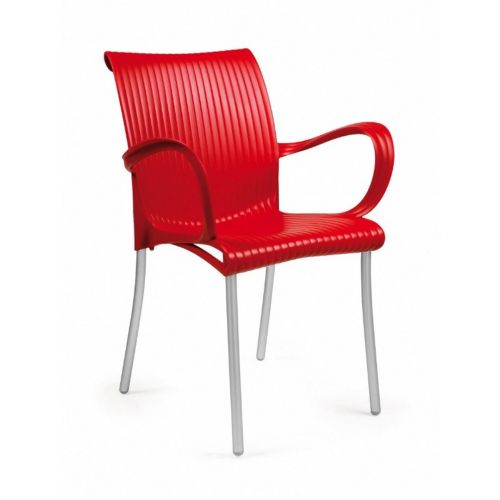 Dama commercial grade stacking dining armchair from Nardi. Arm chair is perfect for restaurants and public areas. Used by five star resorts around the world. Stacks for easy storage. High quality marine grade resin plastic with aluminum frames. Rubber feet for non slip posture. Extremely durable and comfortable. Commercial grade. Sold in minimum sets of 4. Made in Europe.