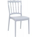 Diva gray resin outdoor dining arm chair. Super sturdy commercial strength. Made from commercial grade resin with gas injection molded legs. Heavier and wider than most resin chairs of its type. So elegant that it is suitable for indoors, so durable that it is used outdoors. Diva resin stacking chairs are perfect for heavy use areas. Preferred by restaurants, cafes and hotels. Diva plastic resin chairs are stackable. Sold in sets of 4. Price shown is for 1 chair. Color silver gray. Certified for strict European standards by CATAS Italian research institute and test laboratory.