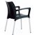 Dolce black resin outdoor dining arm chair. Made from commercial grade resin polypropylene with aluminum legs. Perfect for heavy use areas. Great for outdoor spaces, patios and decks. Used by restaurants, cafes and hotels. Legs are anodized aluminum. Chairs are stackable, easy cleaning and UV resistant. Made for outdoor use. Color black.