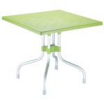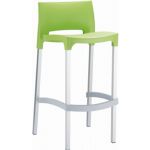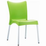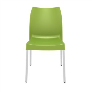 Vita apple green resin outdoor dining chair. Heavy duty commercial grade recyclable polypropylene resin seat with anodized aluminum legs. Perfect for heavy use areas. Great for outdoor spaces, patios and decks. Used by restaurants, cafes and hotels. Legs are anodized aluminum. Chairs are stackable, easy cleaning and UV resistant. Made for outdoor use. Color apple green.