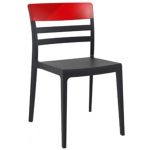 Flash stacking indoor outdoor dining chair. New addition to our hybrid chairs. Chair is made with polypropylene construction and a polycarbonate back accent. Chair legs are reinforced with fiber glass. Commercial grade chairs can be used indoors or outdoors. Chairs are maintenance free. Available in multiple color combinations. Modern minimalist design. Certified for strict European standards by CATAS Italian research institute and test laboratory.